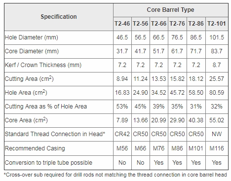 double tube core barrels, all can be converted to triple tube by incorporating PVC