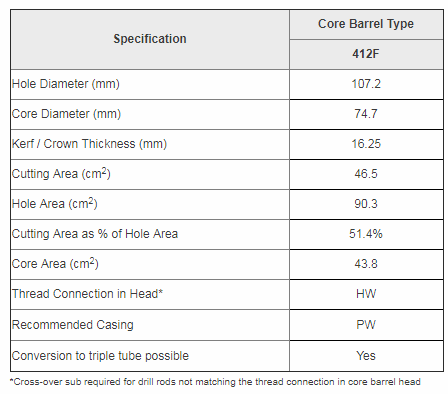 The 412F airflush core barrel is designed for coring in soft to medium hard rocks using air