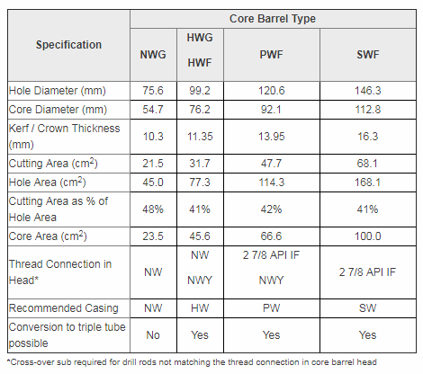 fast retrieval of the core after each core run. Available in DCDMA sizes B, N, H. and P.