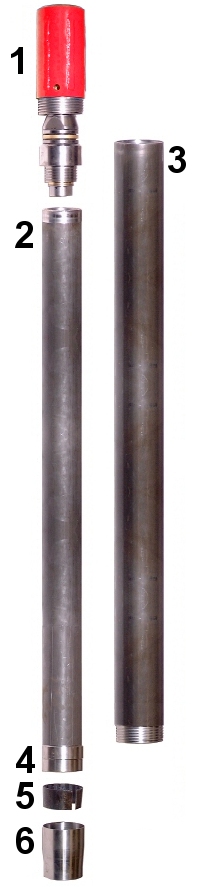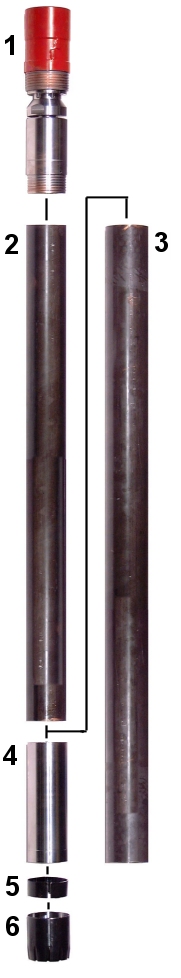 | 1. Core Barrel Head 2. Outer Tube 1.0m 3. Inner Tube 1.0m 4. PVC Coreliner 5. Basket Core Lifter 6. Cutting Shoe 7. T.C. Core Bit |