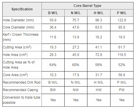 We supply a very broad range of Core Drilling Equipment in accordance with both Metric, DCDMA and Wireline Standards. We also offer Core Barrels designed for special applications such as air-flush drilling and for sampling in very loose sandy, materials. If you do not know exactly which tools are best for your application then see our Core Drilling Equipment Selection Guide. This gives you some helpful hints and takes you through the decision steps necessary to make a proper product selection.