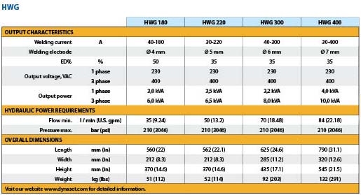 Dynaset hydraulic welding generator transforms hydraulic power into electricity for welding and external devices.